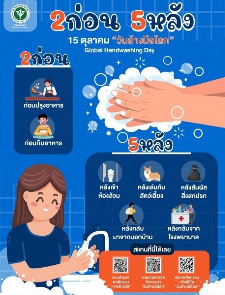 "วันล้างมือโลก" (Global Handwashing Day) องค์การบริหารส่วนตำบลหนองหญ้าปล้อง "ล้างมืออย่างถูกวิธี ด้วยน้ำและสบู่ 7 ขั้นตอน"[15 ตุลาคม 2568]