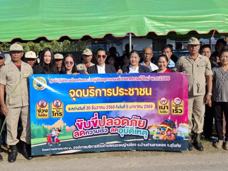 description องค์การบริหารส่วนตำบลหนองหญ้าปล้อง โดยนางมานพ พึ่งทองคำ นายกอบต. พร้อมด้วยคณะผู้บริหาร พนักงานส่วนตำบล และพนักงานจ้าง จัดพิธีเปิดศูนย์บริการการป้องกันและลดอุบัติเหตุทางถนนช่วงเทศกาลปีใหม่ พ.ศ.2569 จุดบริการประชาชน ระหว่างวันที่ 30 ธันวาคม 2568 - ถึงวันที่ 5 มกราคม 2569 ณ บริเวณหน้าโรงพยาบาลส่งเสริมสุขภาพตำบลหนองหญ้าปล้อง อำเภอบ้านด่านลานหอย จังหวัดสุโขทัย person admin