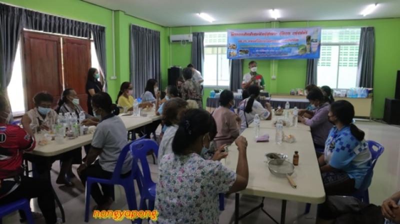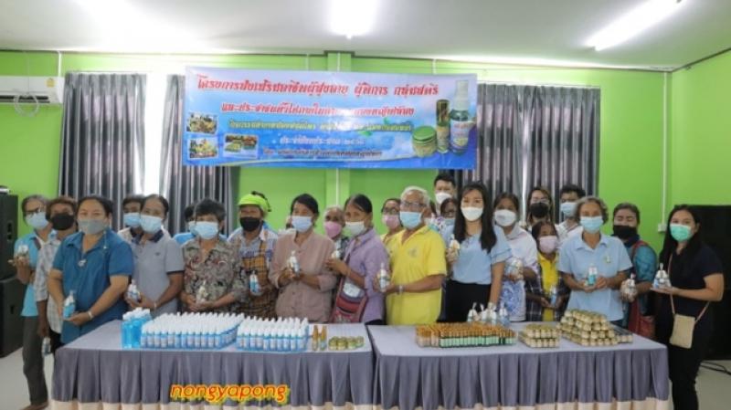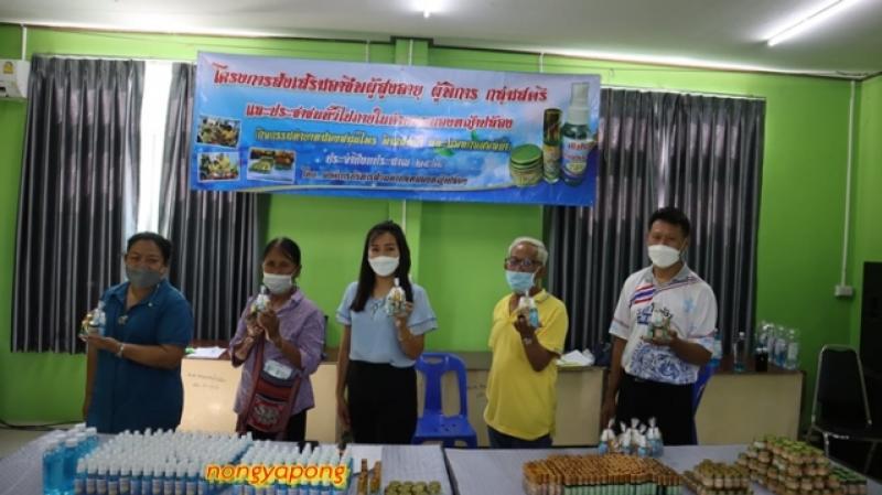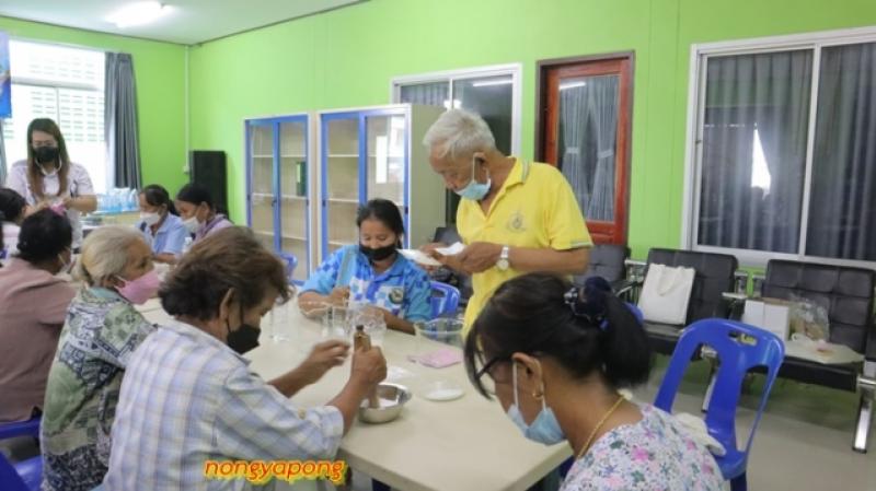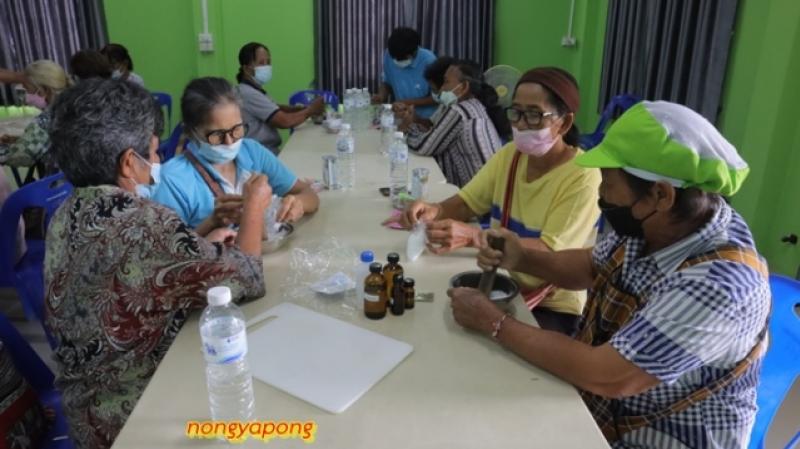 กิจกรรมทำยาหม่องสมุนไพร ครงการส่งเสริมอาชีพผู้สูงอายุ ผู้พิการ กลุ่มสตรีและประชาชนทั่วไปภายในตำบลหนองหญ้าปล้องพิมเสนน้ำ และแอลกอฮอล์น้ำ