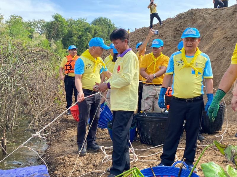 รายละเอียด : จังหวัดสุโขทัย โดยนายสมลักษ์ ยกน้อยวงษ์ รองผู้ว่าราชการจังหวัดสุโขทัย ร่วมกับอำเภอบ้านด่านลานหอย โดยนายเอนก วิทยาพิรุณทอง นายอำเภอบ้านด่านลานหอย และองค์การบริหารส่วนตำบลหนองหญ้าปล้อง โดยร้อยตำรวจเอกทองสุข เหล่าทองสาร นายกอบต. จัดโครงการคลองสวย น้ำใส ใส่ใจสิ่งแวดล้อม ประจำปีงบประมาณ ๒๕๖๘ (กิจกรรมจิตอาสาบำเพ็ญประโยชน์เนื่องในวันสำคัญที่เกี่ยวข้องกับสถาบันพระมหากษัตริย์ และวันสำคัญของกระทรวงมหาดไทย) ในวันจันทร์ที่ ๒๕ พฤศจิกายน ๒๕๖๗ ณ บริเวณคลองแม่รำพัน หมู่ที่ ๑ บ้านหนองไม้กอง ตำบลหนองหญ้าปล้อง อำเภอบ้านด่านลานหอย จังหวัดสุโขทัย