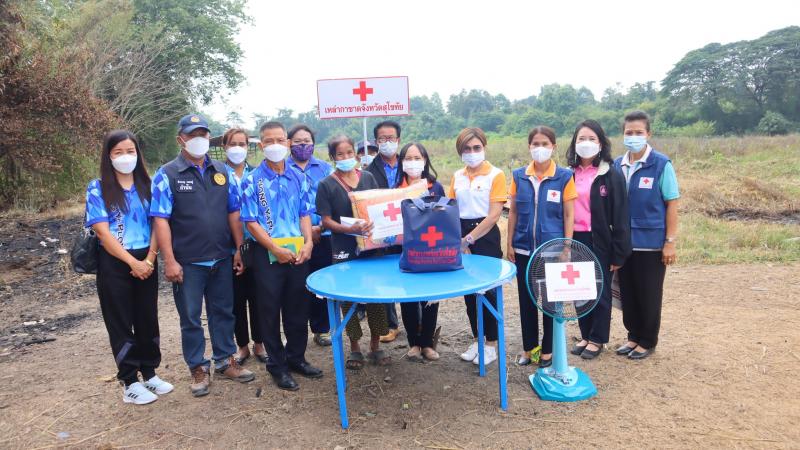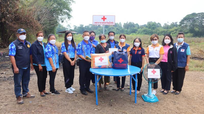 ร่วมให้การต้อนรับ คุณพร้อมจันทร์ ทีคะสุข นายกเหล่ากาชาดจังหวัดสุโขทัย ลงตรวจเยี่ยมบ้านผู้ประสบเหตุอัคคีภัย รายนางสำราญ แก้วคำ บ้านเลขที่ 12/1 หมู่ 9 บ้านเตาปูน อำเภอบ้านด่านลานหอย จังหวัดสุโขทัย