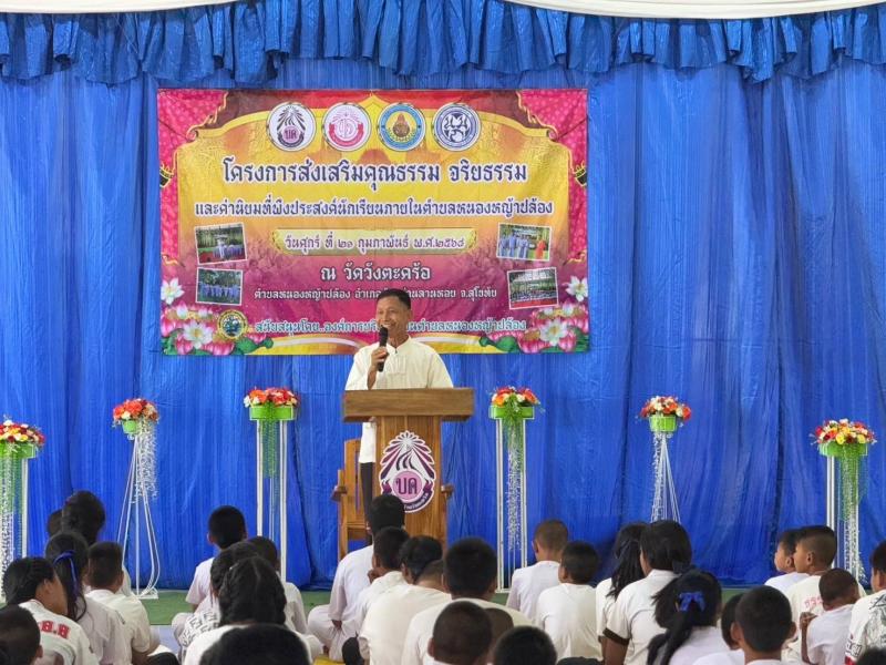 รายละเอียด : วันศุกร์ ที่ 21 กุมภาพันธ์ 2568 ร้อยตำรวจเอกทองสุข เหล่าทองสาร นายกองค์การบริหารส่วนตำบลหนองหญ้าปล้อง เข้าร่วมพิธีเปิด โครงการส่งเสริมคุณธรรม จริยธรรม เเละค่านิยมอันพึงประสงค์นักเรียนภายในตำบลหนองหญ้าปล้อง ณ วัดวังตะคร้อ หมู่ที่ 4 ตำบลหนองหญ้าปล้อง อำเภอบ้านด่านลานหอย จังหวัดสุโขทัย