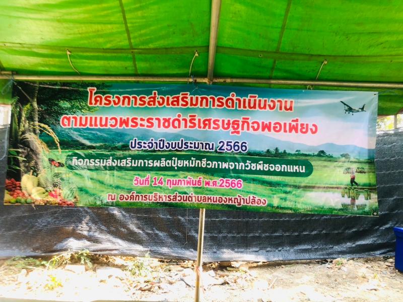 รายละเอียด : องค์การบริหารส่วนตำบลหนองหญ้าปล้องโดยร้อยตำรวจเอกทองสุข เหล่าทองสาร นายกองค์การบริหารส่วนตำบลพร้อมด้วย คณะผู้บริหาร สมาชิกสภาอบต. พนักงานส่วนตำบล และพนักงานจ้างทุกท่าน จัดโครงการส่งเสริมการดำเนินงานตามแนวพระราชดำริ เศรษฐกิจพอเพียง ประจำปีงบประมาณ 2566 กิจกรรมส่งเสริมการผลิตปุ๋ยหมักชีวภาพจากวัชพืชจอกแหน ในวันอังคารที่ 14 กุมาพันธ์ 2566 ณ องค์การบริหารส่วนตำบลหนองหญ้าปล้อง อำเภอบ้านด่านลานหอย จังหวัดสุโขทัย