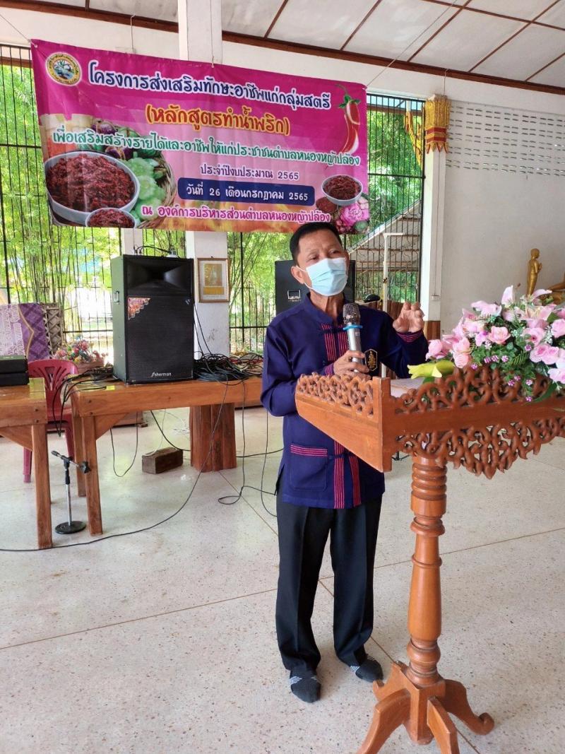 รายละเอียด : องค์การบริหารส่วนตำบลหนองหญ้าปล้อง โดยร้อยตำรวจเอกทองสุข เหล่าทองสาร นายกองค์การบริหารส่วนตำบลพร้อมด้วยคณะผู้บริหาร สมาชิกสภาอบต. พนักงานส่วนตำบล และพนักงานจ้าง จัดโครงการอบรมส่งเสริมทักษะอาชีพแก่กลุ่มสตรี (หลักสูตรทำน้ำพริก) เพื่อเสริมสร้างรายได้และอาชีพให้แก่ประชาชนตำบลหนองหญ้าปล้อง ประจำปีงบประมาณ ๒๕๖๕ ใน วันอังคารที่ ๒๖ กรกฎาคม ๒๕๖๕ ณ วัดวังตะคร้อ ตำบลหนองหญ้าปล้อง อำเภอบ้านด่านลานหอย จังหวัดสุโขทัย