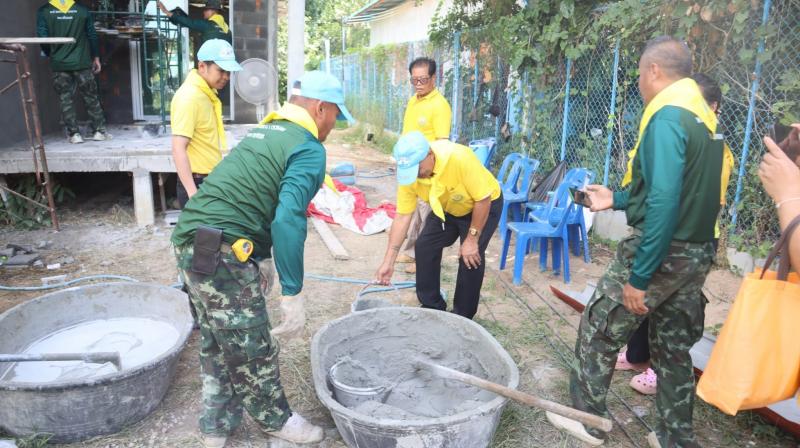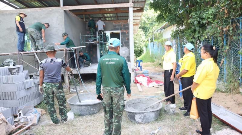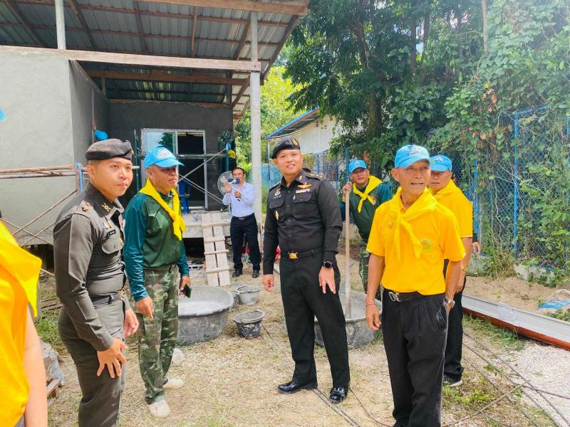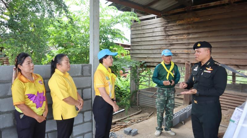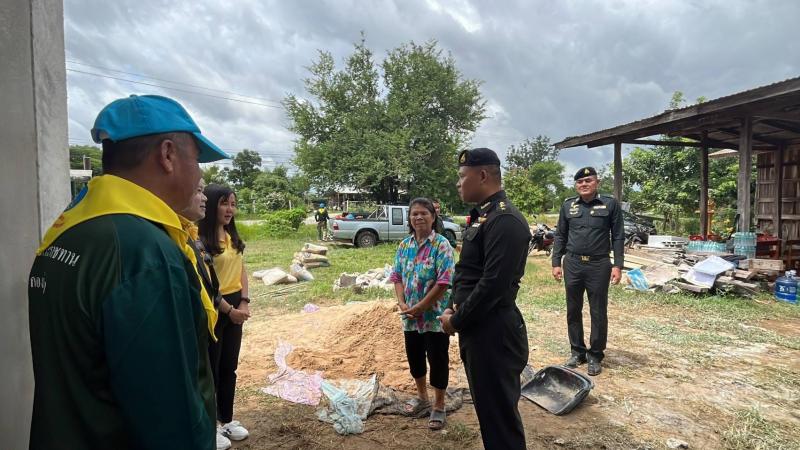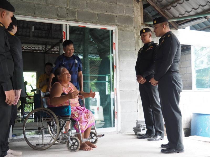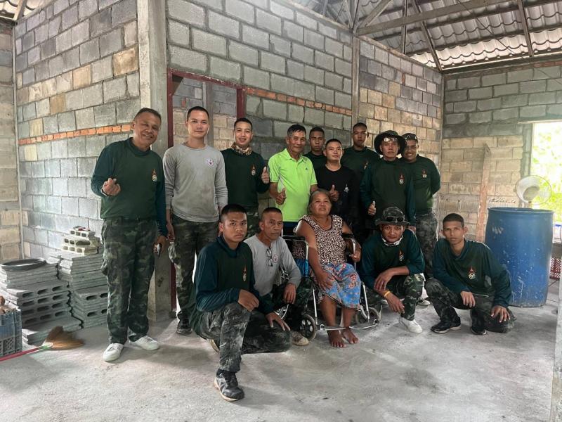 ผู้บังคับกองพันซ่อมบำรุงที่ 23 กองบัญชาการช่วยรบที่ 3 และร้อยโทไพบูลย์ มากร ผู้บังคับหมวดซ่อมบำรุงยุทโธปกรณ์ สายช่าง ที่นำกำลังพลเข้าช่วยเหลือสร้างบ้านให้กับผู้พิการและผู้สูงอายุ ภายในตำบลหนองหญ้าปล้อง จำนวน 4 หลังคาเรือน