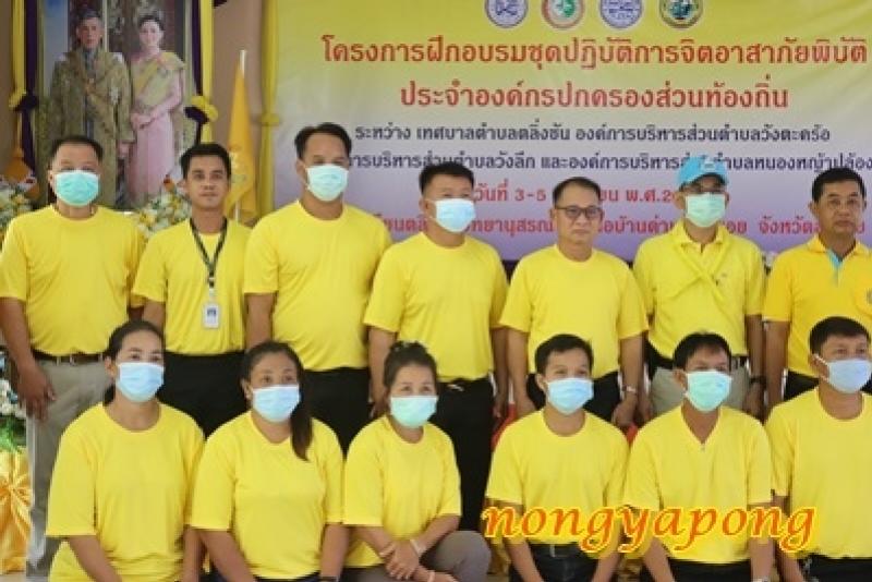 รายละเอียด : องค์การบริหารส่วนตำบลหนองหญ้าปล้องร่วมกับเทศบาลตลิ่งชัน องค์การบริหารส่วนตำบลวังลึก และองค์การบริหารส่วนตำบลวังตะคร้อ จัดโครงการฝึกอบรมชุดปฏิบัติการจิตอาสาภัยพิบัติประจำองค์กรปกครองส่วนท้องถิ่น ระหว่างวันที่ ๓-๕ กันยายน ๒๕๖๓ ณ โรงเรียนตลิ่งชันวิทยานุสรณ์ อำเภอบ้านด่านลานหอย จังหวัดสุโขทัย