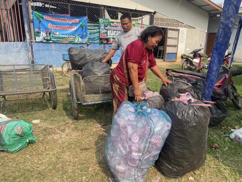 ร่วมประชุมประจำเดือน หมู่ที่ 4 บ้านหนองจิกกรี และสมาชิกธนาคารขยะชุมชนบ้านหนองจิกกรี นำขยะมาขายให้แก่ผู้รับซื้อ
