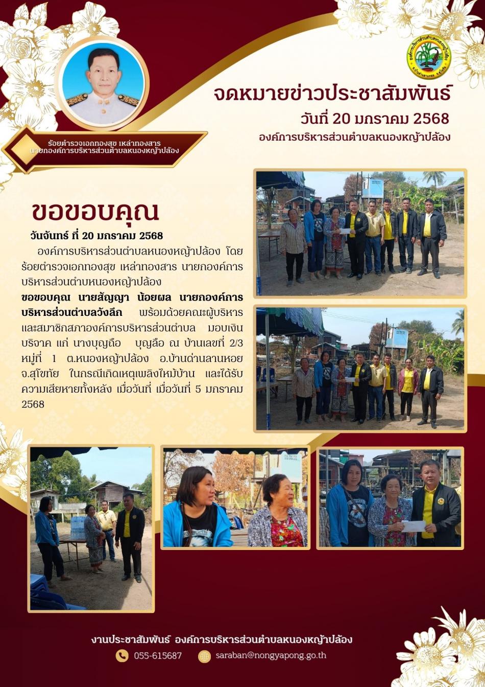 ข่าวประชาสัมพันธ์องค์การบริหารส่วนตำบลหนองหญ้าปล้อง [20 มกราคม 2568]