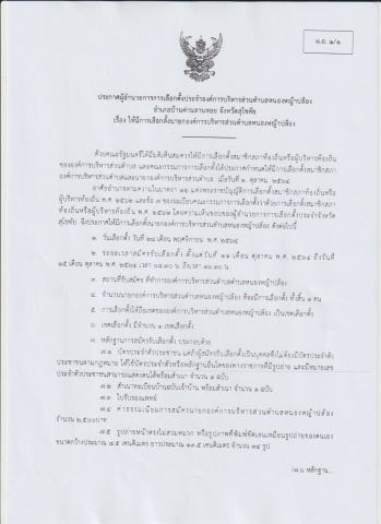 ประกาศผู้อำนวยการการเลือกตั้งประจำองค์การบริหารส่วนตำบลหนองหญ้าปล้อง อำเภอบ้านด่านลานหอย จังหวัดสุโขทัย เรื่อง ให้มีการเลือกตั้งนายกองค์การบริหารส่วนตำบลหนองหญ้าปล้อง