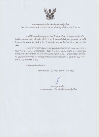 ประกาศเรื่อง เรียกประชุมสภาองค์การบริหารส่วนตำบล สมัยสามัญ สมัยที่ 1 ประจำปี 2562