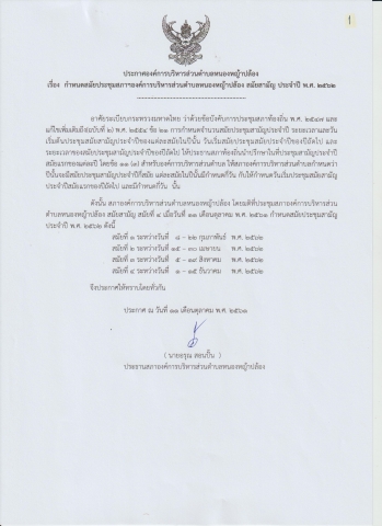 ประกาศเรื่อง กำหนดสมัยประชุมสภาองค์การบริหารส่วนตำบลหนองหญ้าปล้อง สมัยสามัญ ประจำปี พ.ศ. 2562
