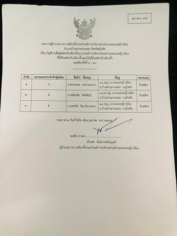 เรื่อง บัญชีรายชื่อผู้สมัครรับเลือกตั้งนายกองค์การบริหารส่วนตำบลหนองหญ้าปล้อง ที่ได้รับสมัครรับเลือกตั้งและไม่ได้รับสมัครรับเลือกตั้ง