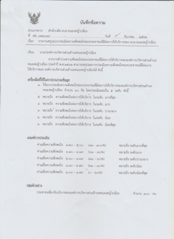 รายงานสรุปแบบประเมินความพึงพอใจของประชาชนที่มีต่อการให้บริการขององค์การบริหารส่วนตำบลหนองหญ้าปล้อง