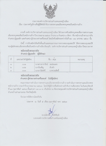 ประกาศองค์การบริหารส่วนตำบลหนองหญ้าปล้อง เรื่อง ประกาศบัญชีรายชื่อผู้มีสิทธิเข้ารับการสรรหาและเลือกสรรบุคคลเป็นพนักงานจ้าง