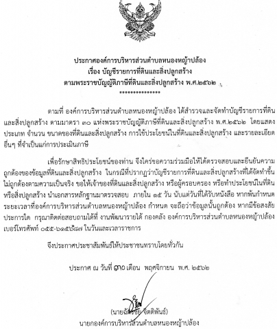 ประกาศ บัญชีรายการที่ดินและสิ่งปลูกสร้าง ตามพระราชบัญญัติภาษีที่ดินและสิ่งปลูกสร้าง พ.ศ.2562