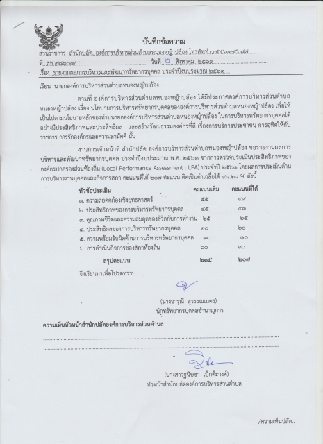 บันทึกข้อความรายงานผลการบริหารและพัฒนาทรัพยากรบุคคล ประจำปีงบประมาณ 2561
