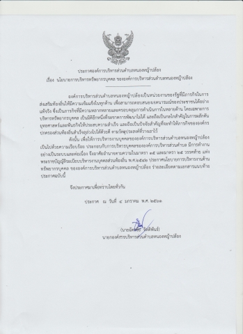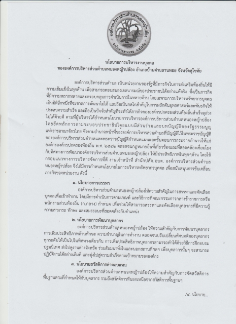 ประกาศเรื่องนโยบายการบริหารทรัพยากรบุคคลขององค์การบริหารส่วนตำบลหนองหญ้าปล้อง