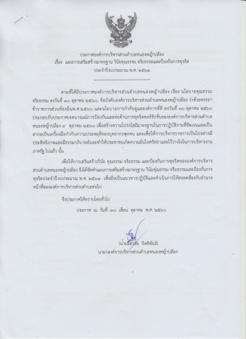 ประกาศเรื่องแผนการเสริมสร้างมาตรฐาน วินัย คุณธรรมจริยธรรมและป้องกันการทุจริต