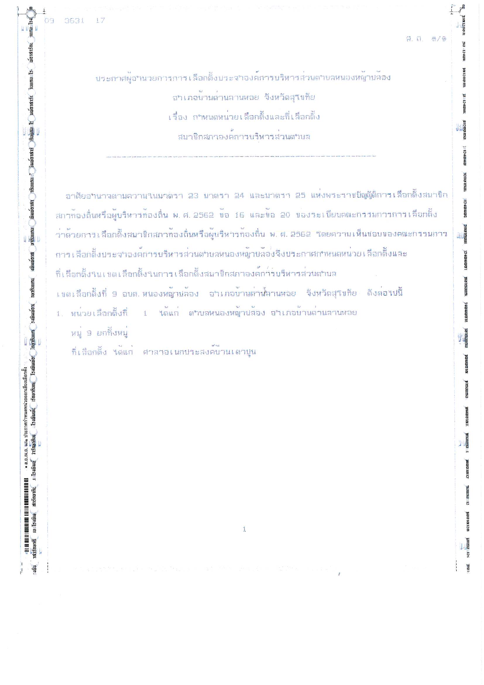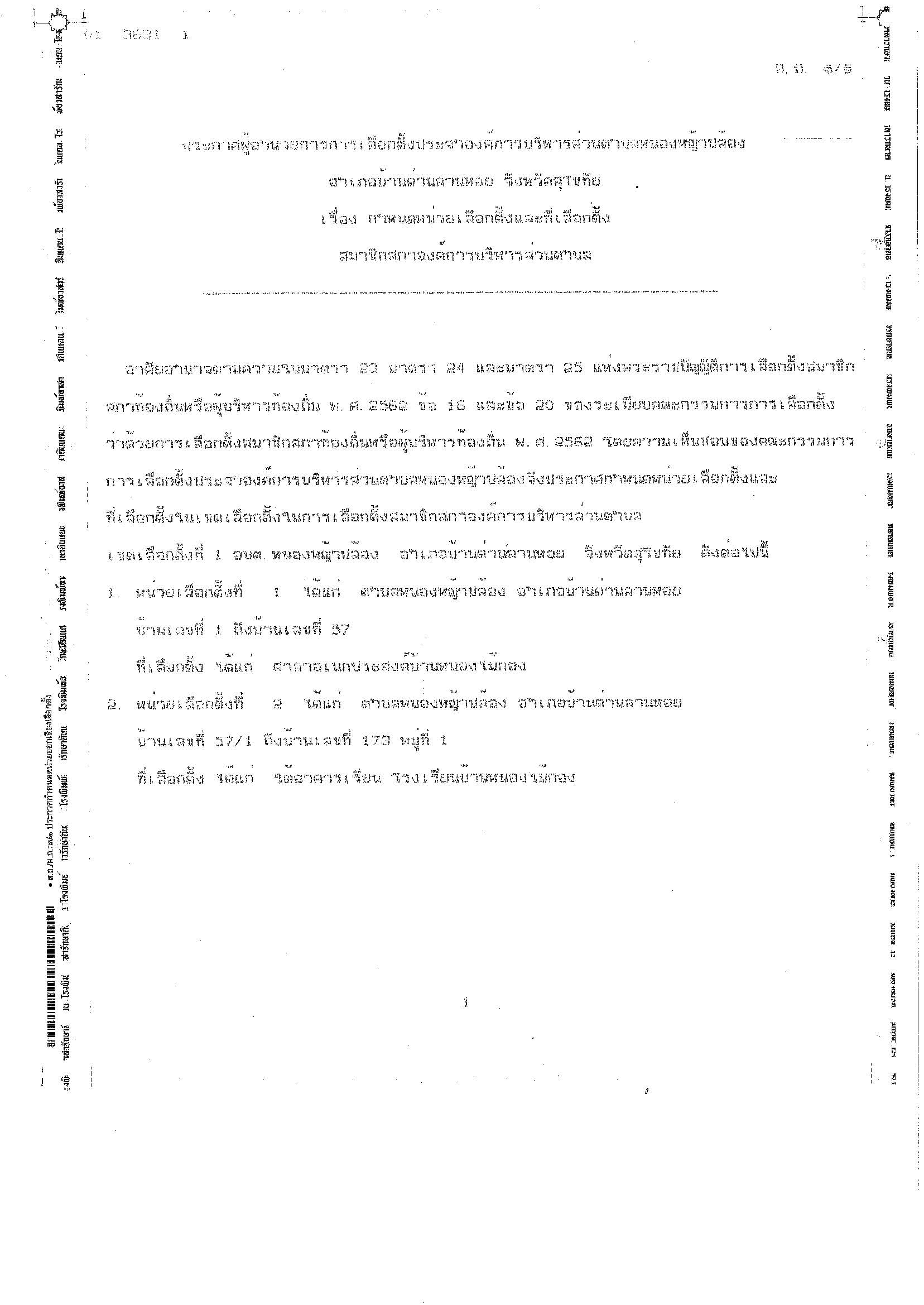 ประกาศผู้อำนวยการการเลือกตั้งประจำองค์การบริหารส่วนตำบลหนองหญ้าปล้อง